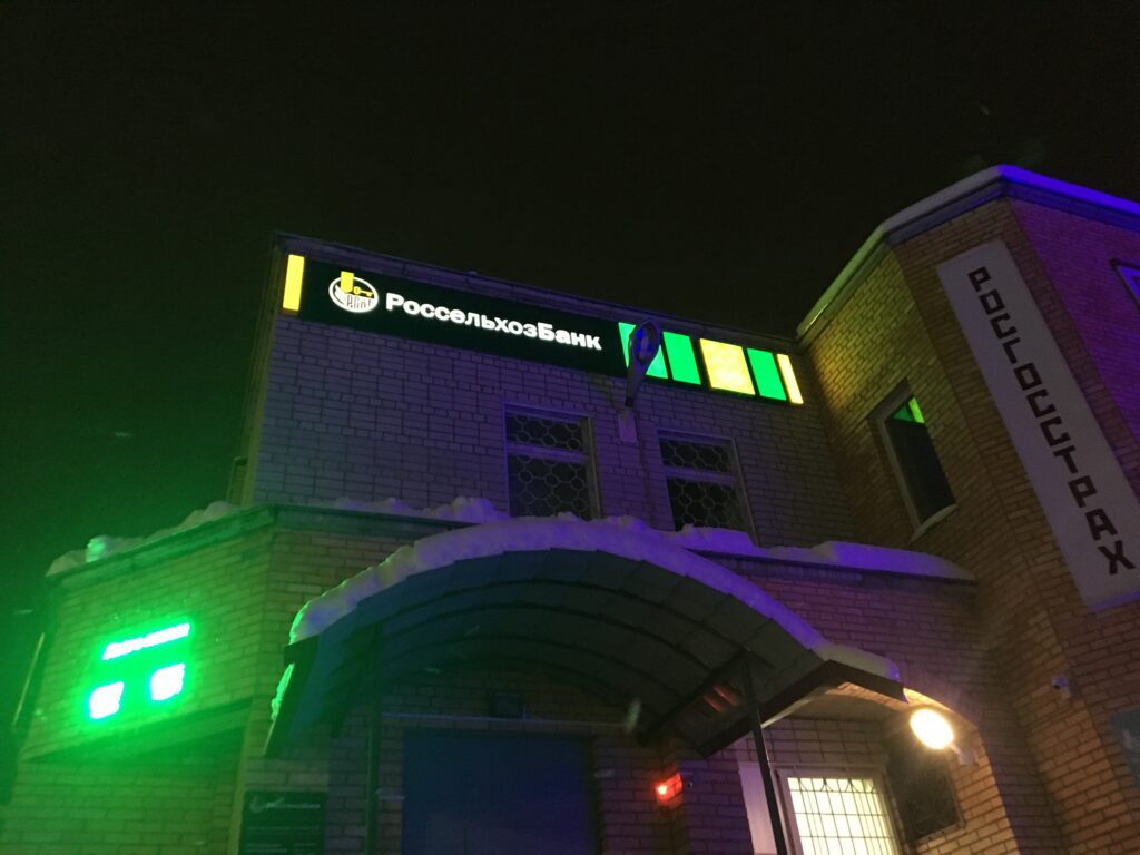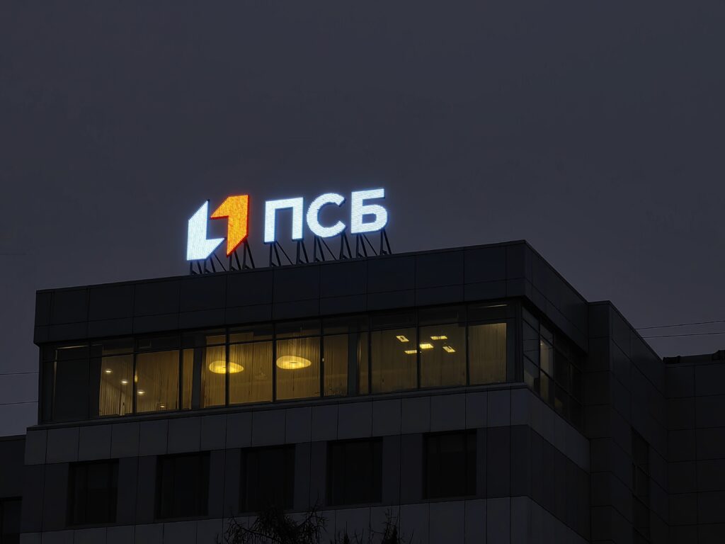 Проектировка, изготовление и монтирование крышной установки для банка ПСБ с высокой яркостью и надежностью работы. Были проведены доскональные проектно-изыскательские работы, спроектировано решение, позволяющее эксплуатировать необходимый размер вывески в текущих условиях. Конструкция элементов позволяет оперативно обслуживать сложную электротехнику. Для повышения надежности применялись дорогостоящие импортные комплектующие и химия.