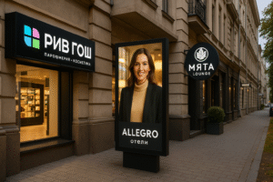 Рекламные панели аккуратно подают информацию о товарах, акциях и услугах, органично вписываясь в интерьер или фасад.